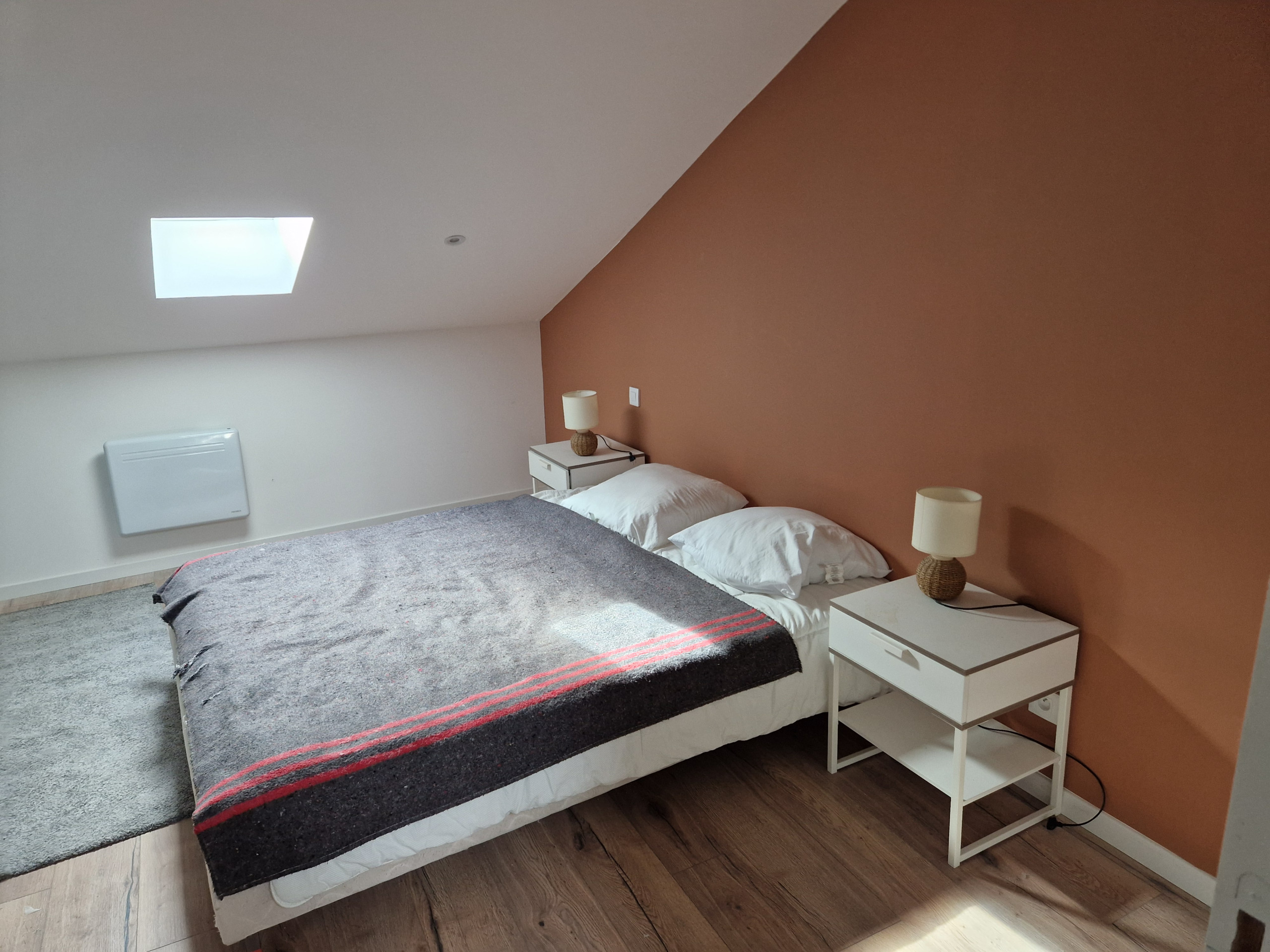 Il est composé d'une chambre avec un lit personnes et une autre avec deux lit simple.