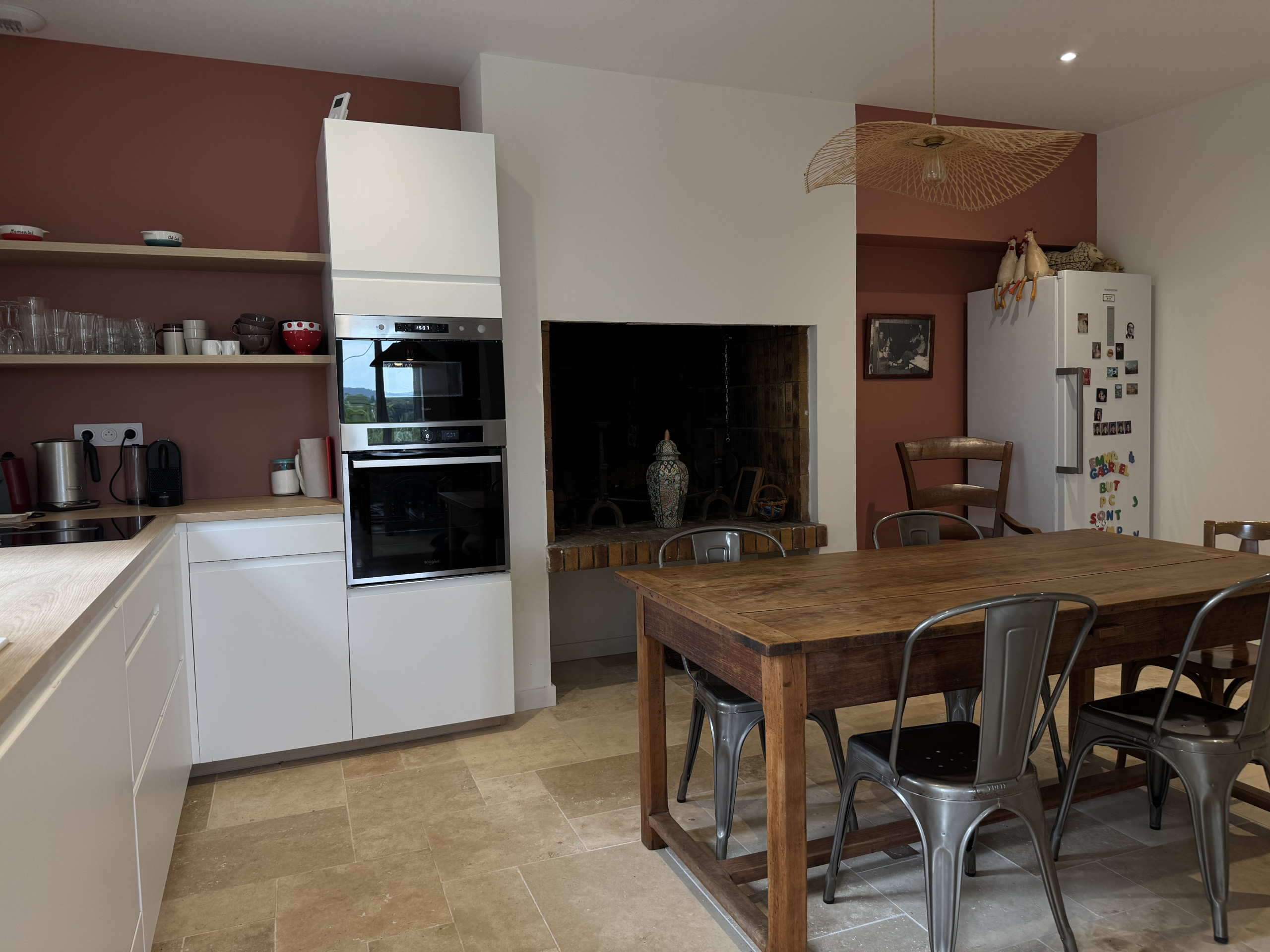 La cuisine américaine moderne donne sur la salle à manger et dispose d'un accès facile à la terrasse.