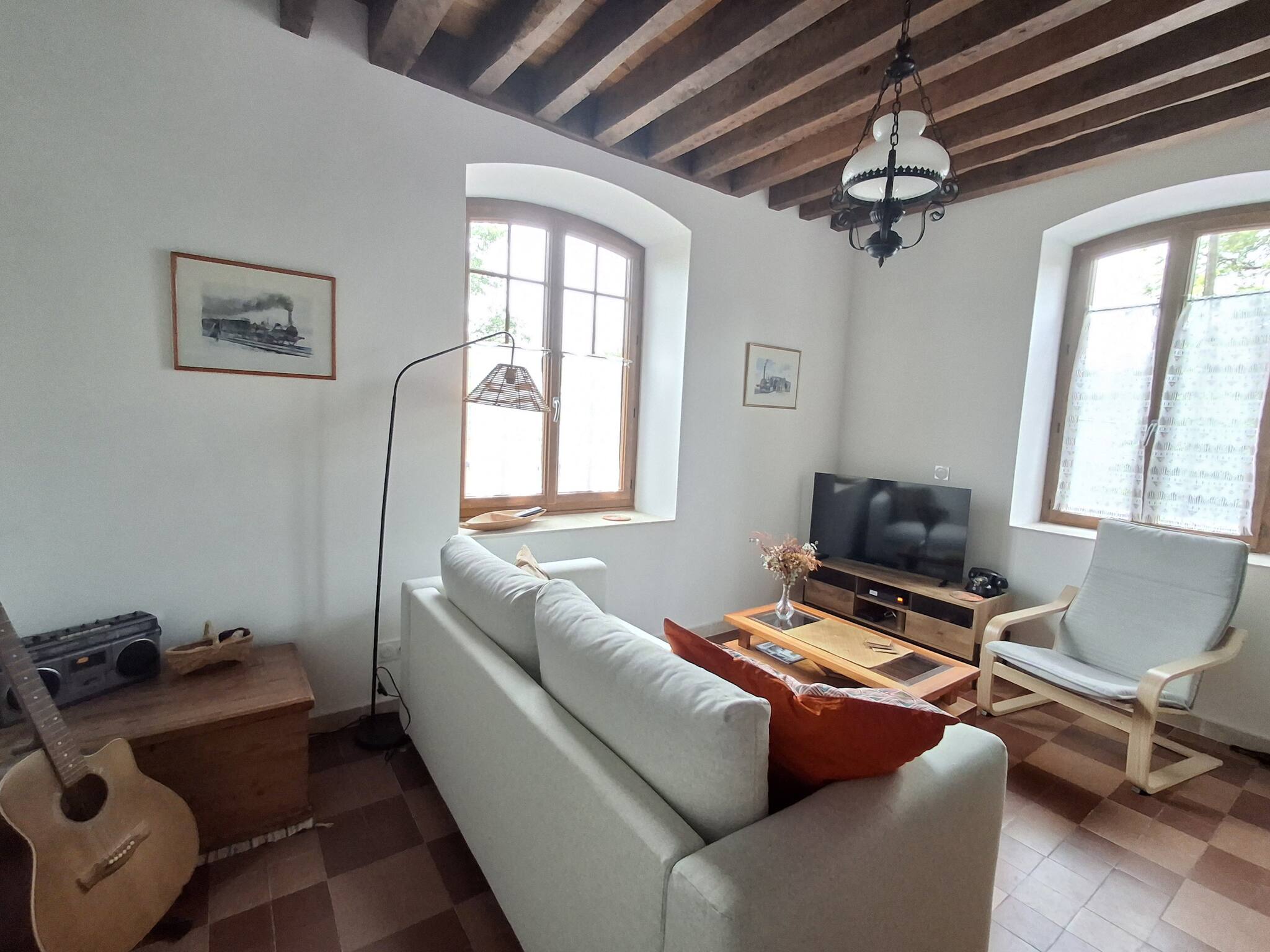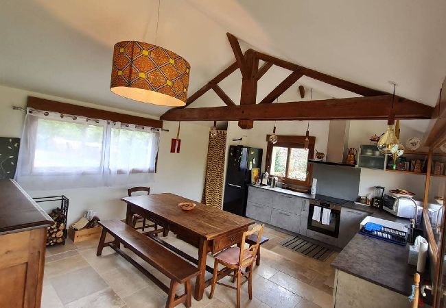 Gite tout confort composé au rez de chaussée d’une cuisine équipée avec salle à manger donnant sur le jardin où se trouve un vrai four à pain utilisable, un salon, et un wc séparé .
