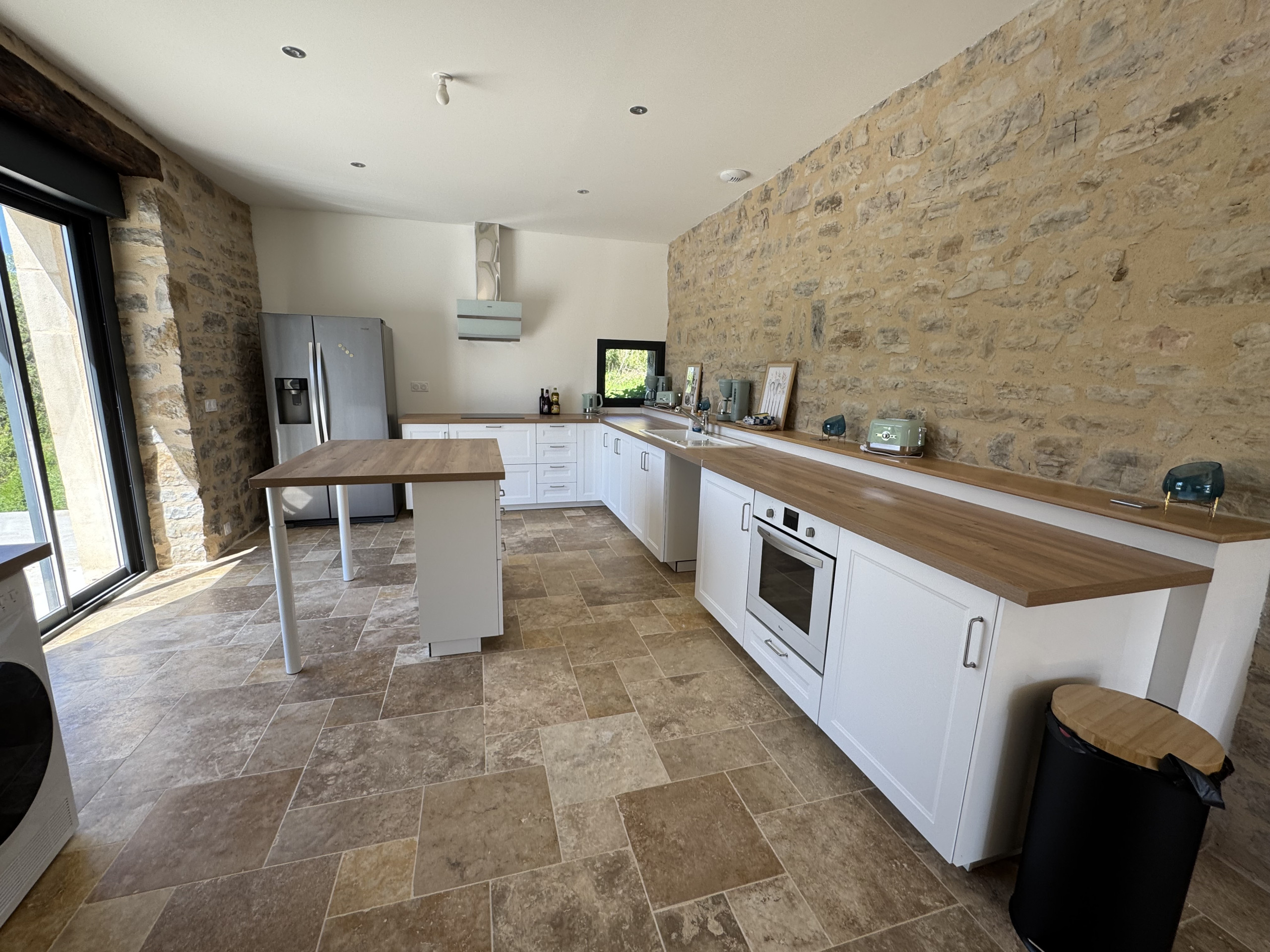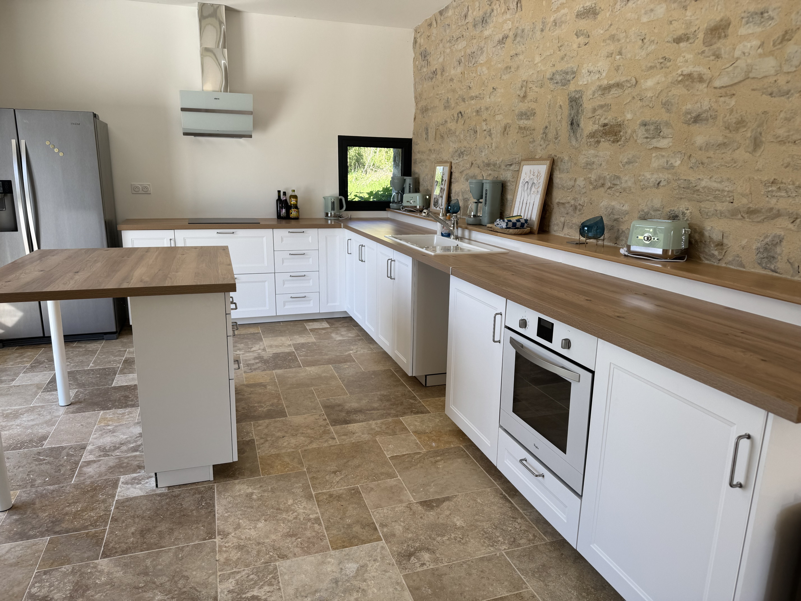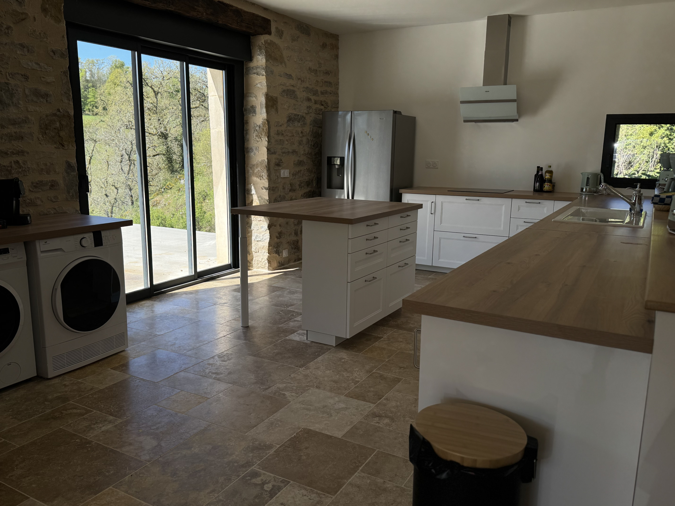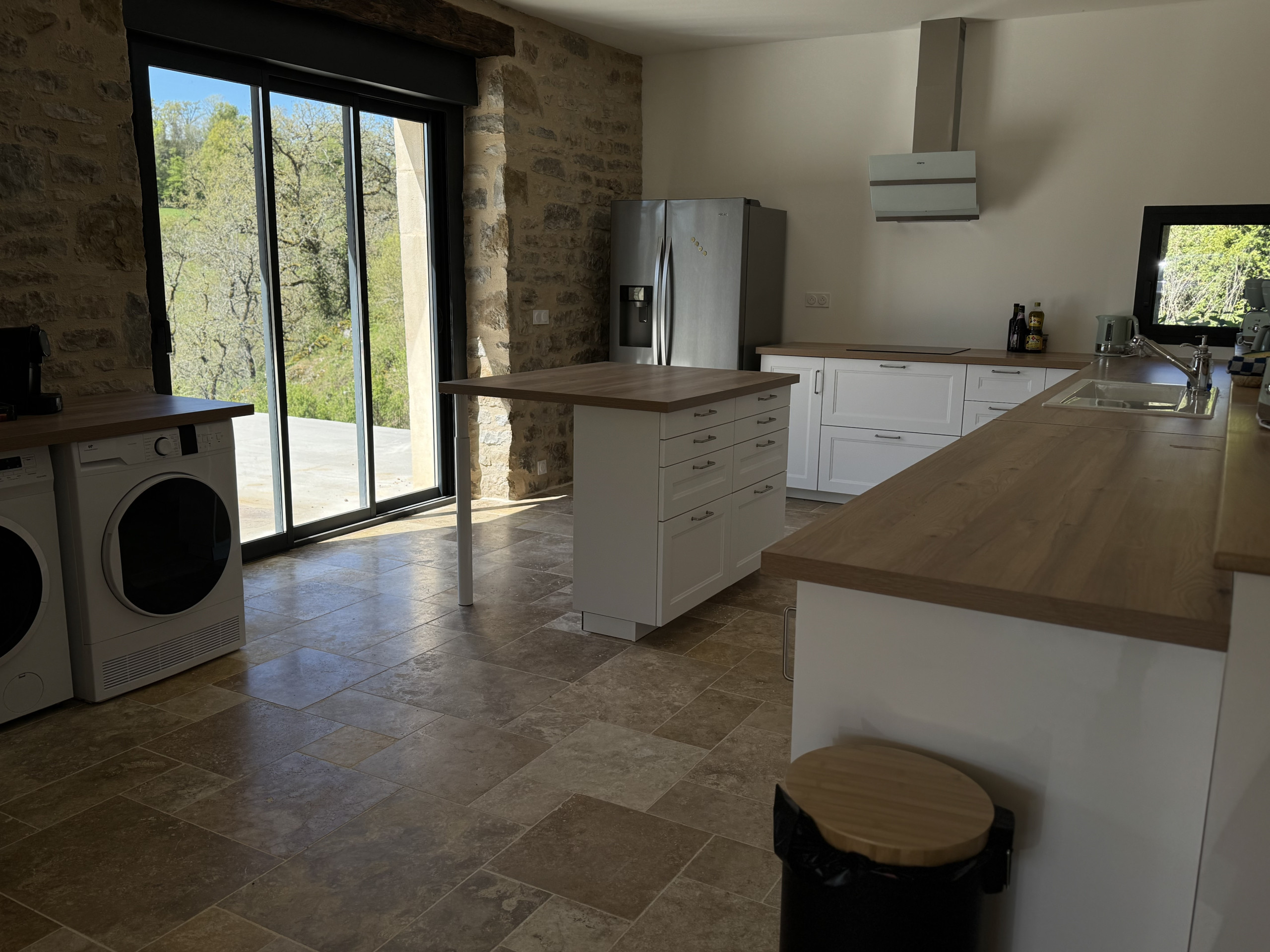 Elle est composé d'un grand séjour - cuisine donnant sur une terrasse avec mobilier d'extérieur et barbecue