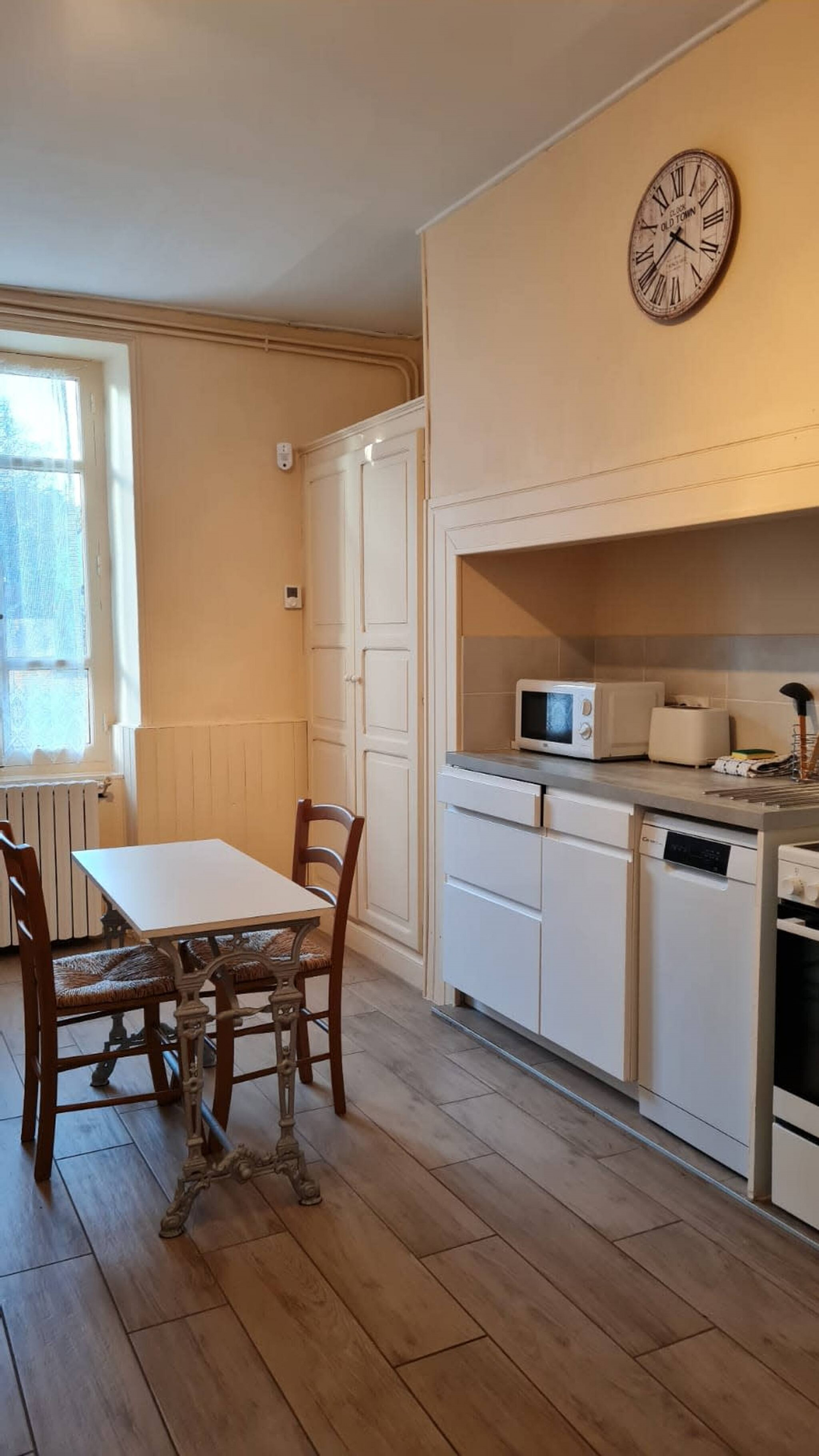 Au rez-de-chaussée, une cuisine équipée, 1 salon - salle à manger, 1 wc.