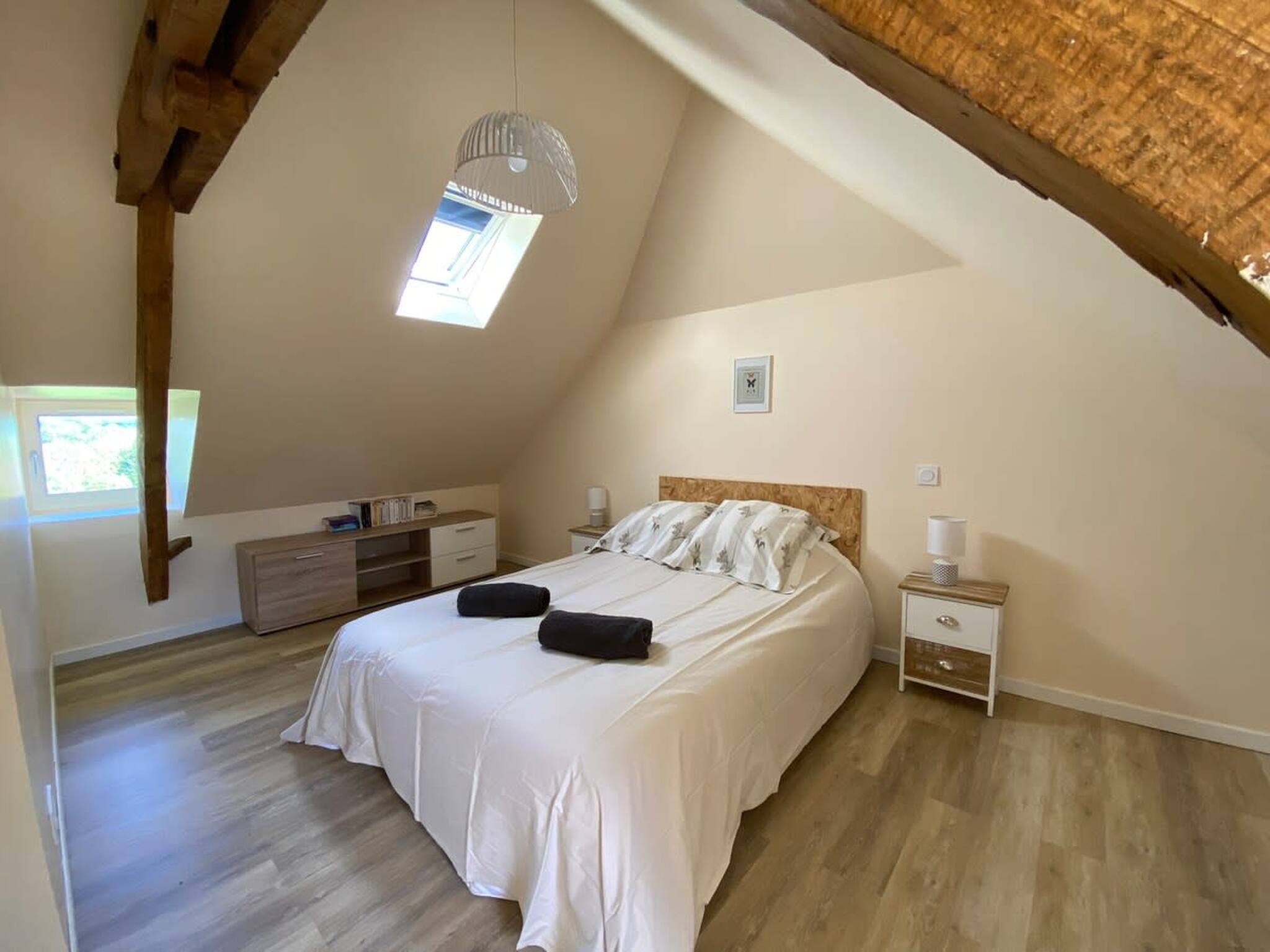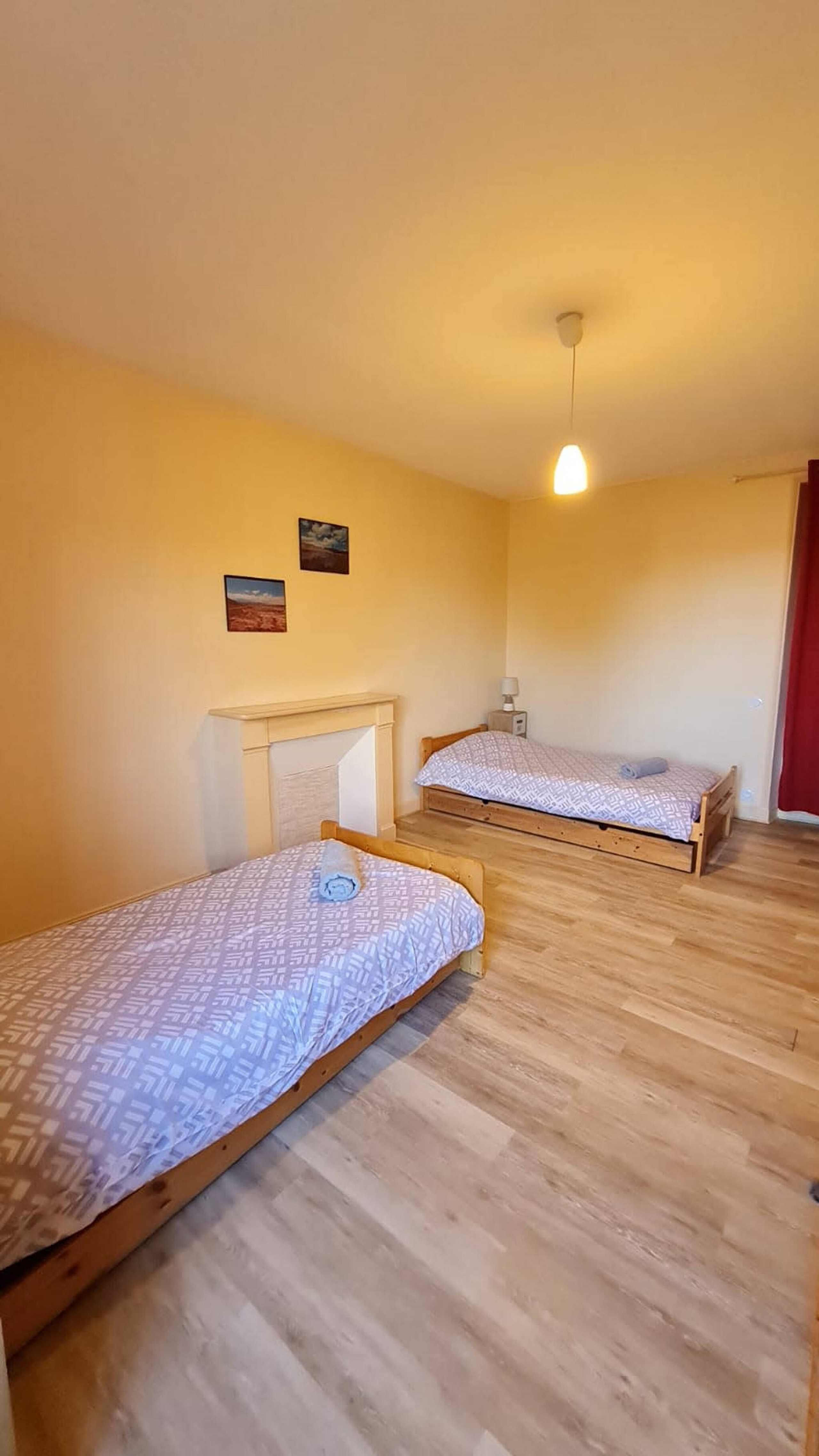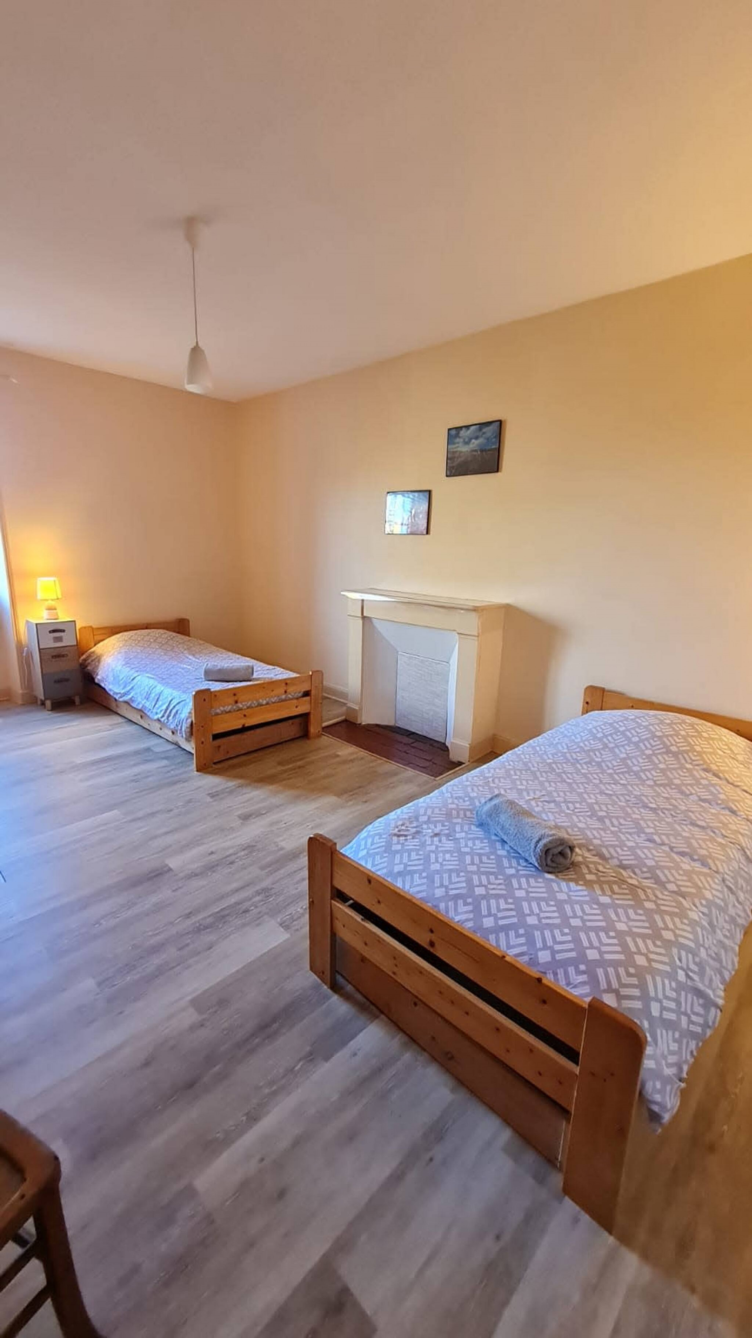 Au 2ième étage : 2 chambres avec 1 lit double chacune, salle d'eau avec wc.