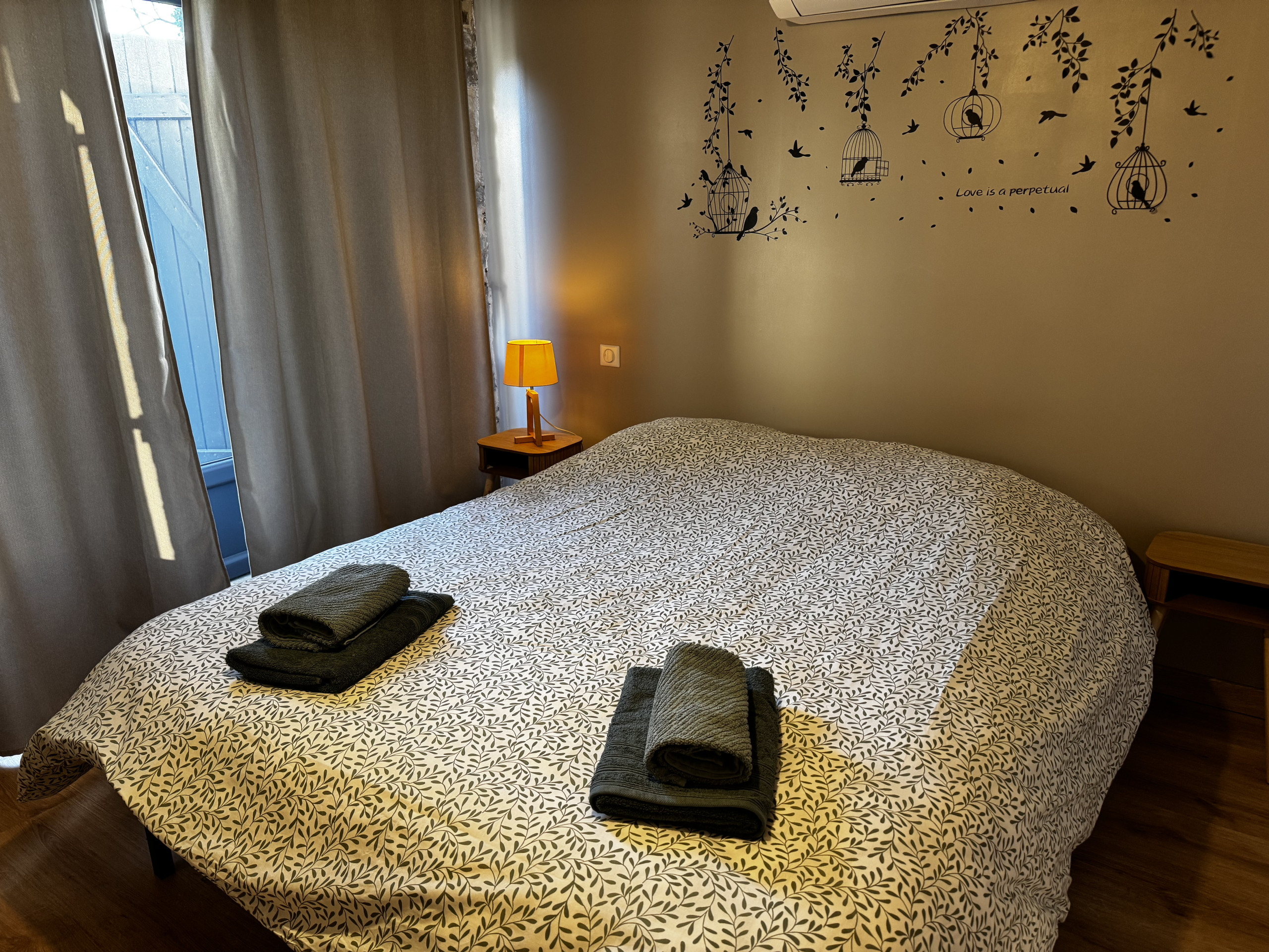 La maison peut accueillir jusqu’à 8 personnes grâce à ses trois chambres confortables situées au rez-de-chaussée, chacune disposant de sa propre salle d’eau avec WC, pour un maximum d’intimité. L’une des chambres est également équipée d’une télévision.